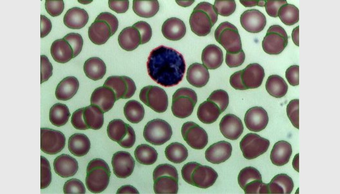 (4)★自動分割長形粘連或圓形粘連目標(biāo),自動分類計數(shù)與測量(獲得面積、周長、直徑、主軸、副軸等形態(tài)參數(shù))。