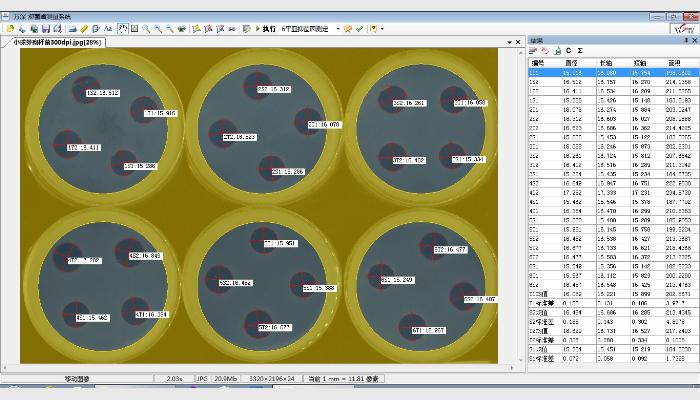 (9)圖像測量:線段、多線段、樣條曲線、圓弧、圓周、橢圓、矩形、多邊形、不規(guī)則形、長度、面積、周長、角度等測量,具有卡尺工具。在線標(biāo)定測量單位,磁性套索、所有形狀矢量化、可編輯,圖像上可任意標(biāo)注(邊界、數(shù)字、符號、填充等).