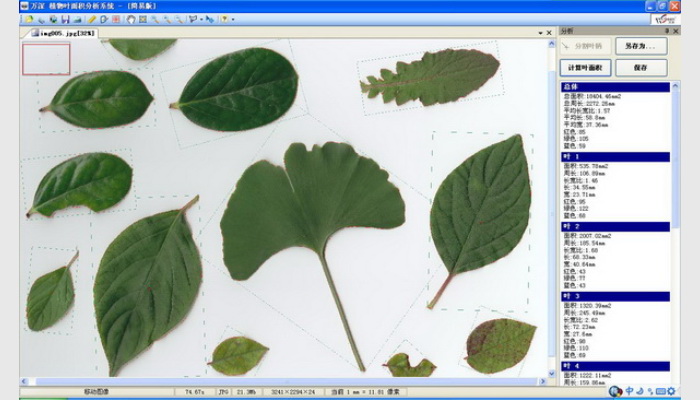 3、可分析小至1mm ^2的葉片,分析誤差<0.5%、測量中的分析時間<2秒,自動獨立標記各葉片并可保存圖,分析結果可輸出至Excel表。