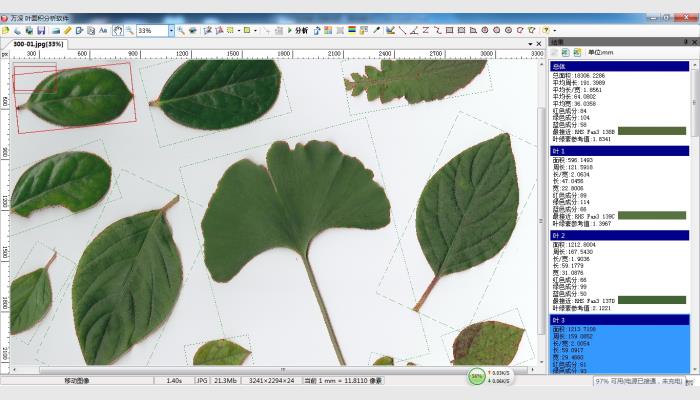 (11)能測(cè)各類針葉的葉面積、長(zhǎng)度、粗細(xì)。