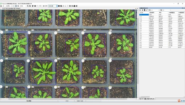 (8)其它:不同生長(zhǎng)時(shí)期自動(dòng)批量化處理分析,多植株網(wǎng)格分析,直線、角度等幾何測(cè)量,各測(cè)量結(jié)果可編輯修正。