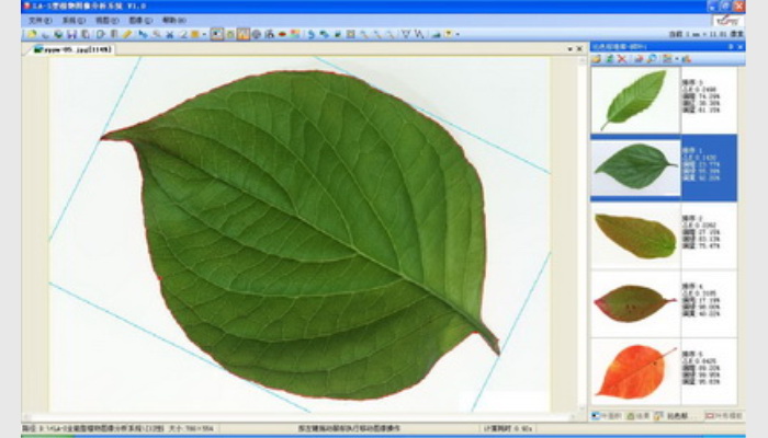 6、可分析小至1mm ^2的葉片,分析誤差<0.5%、測量中的分析時間<2秒,自動獨立標記的各葉片圖可保存,分析結(jié)果可輸出至Excel表。