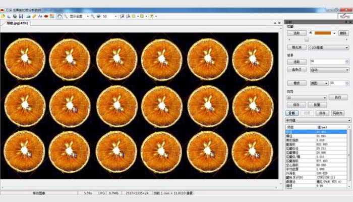 (4)可測柑橘類水果的:縱徑、橫徑、果形指數(shù)、總面積、皮厚、肉色分檔分析、外周長。